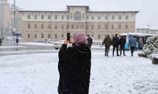 Meteoroloji Genel Müdürlüğü'nün sarı kod ile uyardığı Sivas'ta beklenen kar yağdı. Dün akşam saatlerinde başlayan yağmur, yüksek kesimlerde yerini kara bıraktı. Gecenin ilerleyen saatlerinde kent merkezinde de başlayan kar yağışı şehri beyaza bürüdü. İçerisinde Selçuklu, Osmanlı ve Cumhuriyet dönemi yapılarını barındıran Tarihi Kent Meydanı, yağan kar ile birlikte eşsiz görüntüler oluşturdu. Yağan karın tadını çıkarmak isteyen vatandaşlar, fotoğraf çektirdi.