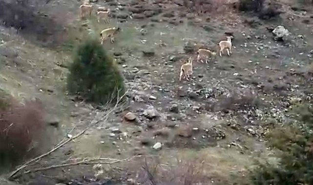 Sivas'ta dağ keçileri muhtarın cep telefonu kamerasına yakalandı