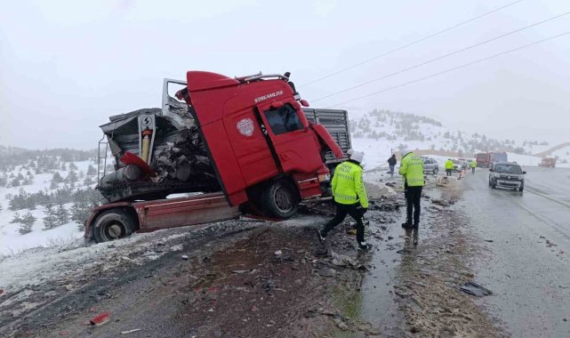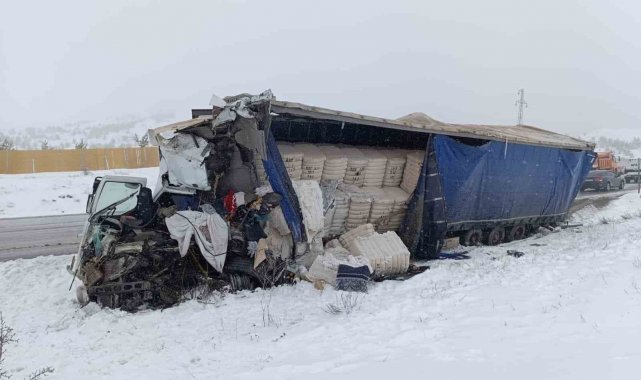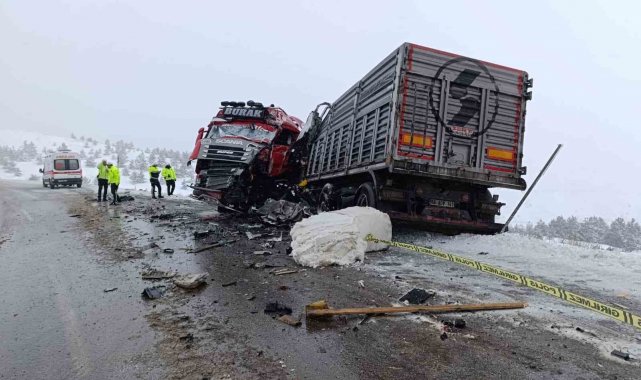 Sivas'ta 2 tırın kafa kafaya çarpıştığı trafik kazasında 1 kişi öldü, 2 kişi ağır yaralandı.