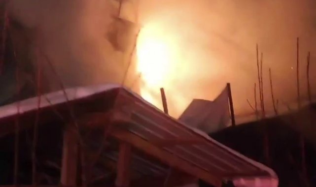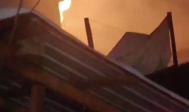 Sivas'ta gecekondunda çıkan yangın geceyi aydınlattı