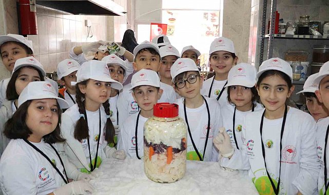 Sivas'ta ilkokul öğrencileri "Lider Çocuk Tarım Kampı Programı" kapsamında tarhana paketleyip turşu yapmayı öğrendiler.
