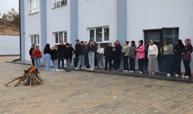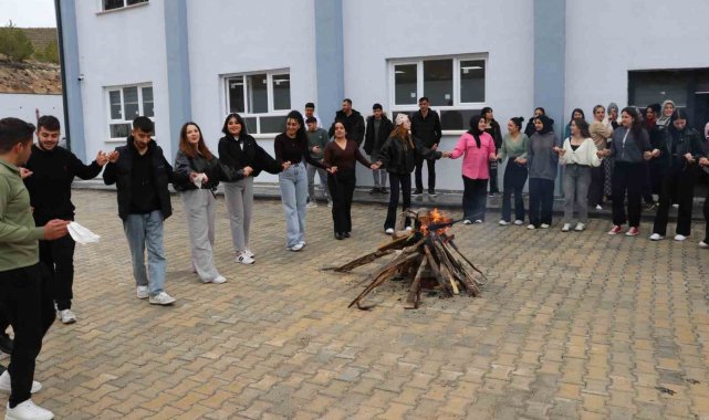 Sivas'ın Gürün ilçesinde bulunan Gürün Meslek Yüksekokulu'nda Nevruz Bayramı coşkuyla kutlandı. Ateş yakıp üzerinden atlayan öğrenciler, halay çekti.