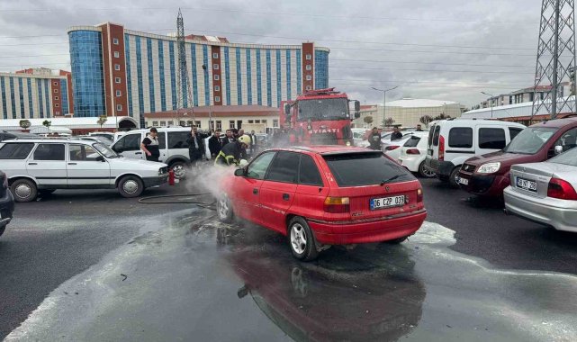 Sivas'ta park halindeki otomobilde çıkan yangın, paniğe neden oldu