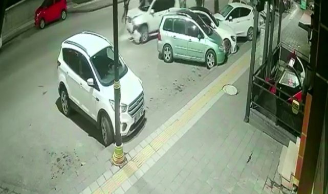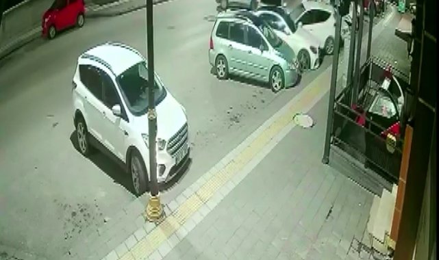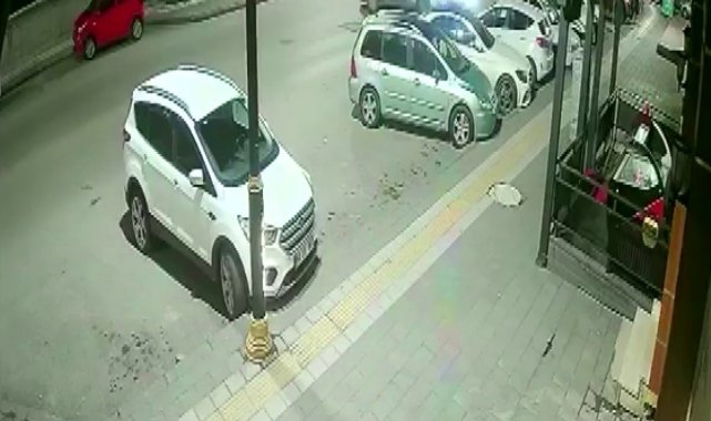 Öte yandan, yaşanan olay çevredeki bir iş yerinin güvenlik kamerasına yansıdı. Görüntülerde, güvenlik görevlileri ve polis ekiplerinin aracı durdurmaya çalıştığı, sürücünün ise kaçmaya devam ederek ekip aracı ve park halindeki otomobillere çarptığı anlar yer aldı. Ayrıca, polis ekiplerinin kaçan aracı durdurmak amacıyla lastiklerine ateş ettiği anlar da kameralara yansıdı.