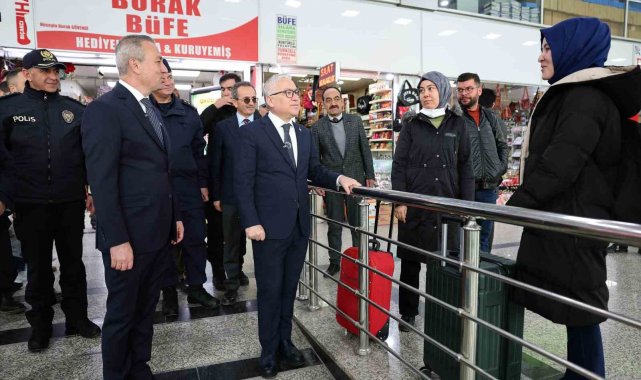 Sivas Valisi Yılmaz Şimşek, bir sonraki ziyaretini Şehirler Arası Otobüs Terminaline gerçekleştirdi. Belediye Başkanı Adem Uzun ile birlikte terminalde yolculuk yapmak üzere bulunan vatandaşlarla tek tek sohbet eden Vali Şimşek, yolcuların Ramazan Bayramlarını tebrik etti. Vali Şimşek, otobüs şoförlerine de emniyet kemeri takmaları ve hız kurallarına uymaları konusunda uyarılarda bulundu.