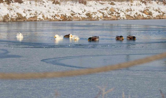 Sibirya soğuklarının etkili olduğu Sivas'ta, hafta sonu etkili olan kar yağışının ardından dondurucu hava dalgası yaşamı olumsuz etkiliyor. Kentte sabah saatlerinde hava sıcaklığı sıfırın altında 10 derece olarak kaydedildi. Sabah erken saatlerde işlerine gitmek için evlerinden çıkan vatandaşlar, buzla kaplanan araç camlarını kazıyarak güne başladı. Bazı sürücüler, soğuk nedeniyle donan kapıları açmakta güçlük çekti. Soğuk havanın etkisiyle binaların çatılarında buz sarkıtları oluştu. Sivas Cumhuriyet Üniversitesi'nde bulunan Hasbahçe'deki yapay göletin büyük bölümü buz tuttu. Gölette bulunan ördekler, suyun donmayan kısımlarında yüzmeye çalıştı. Ördeklerin buzla kaplı gölet üzerindeki görüntüleri, yürüyüş yapan vatandaşların da ilgisini çekti. Gölet çevresinde yürüyüş yapan vatandaşlar, kısmen donan göletin oluşturduğu doğal manzarayı fotoğraflayarak o anları kayda aldı.