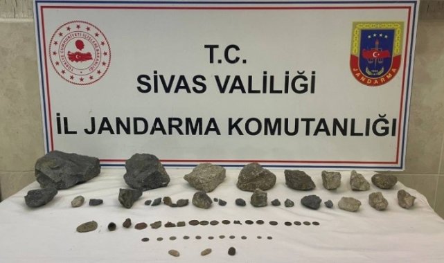 Sivas'ın Suşehri ilçesinde jandarma ekiplerince yapılan aramalarda. Tarihi eser niteliği taşıyan taşlar, sikkeler ve objeler ele geçirildi.