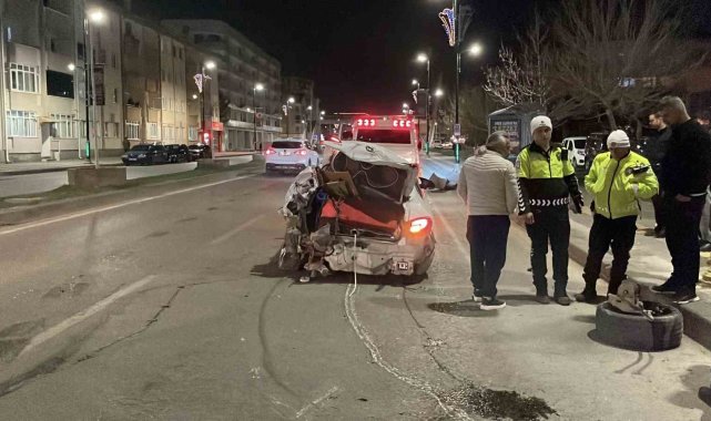 Sivas'ta üç kişinin yaralandığı kazada araç hurdaya döndü: O anlar kamerada