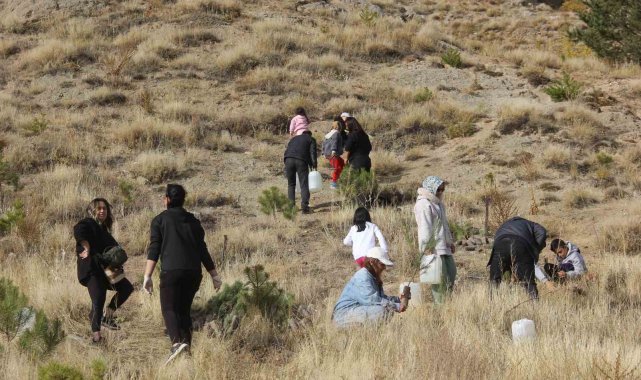 Sivas'ın Zara ilçesinde bir araya gelen üniversite öğrencileri bir haftada 30 bin fidanı toprakla buluşturdu.