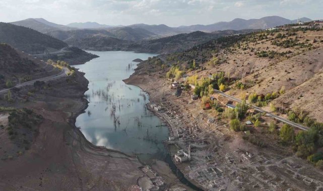 Sivas'ta yaklaşık 15 yıldır sular altında kalan köy tamamen ortaya çıktı
