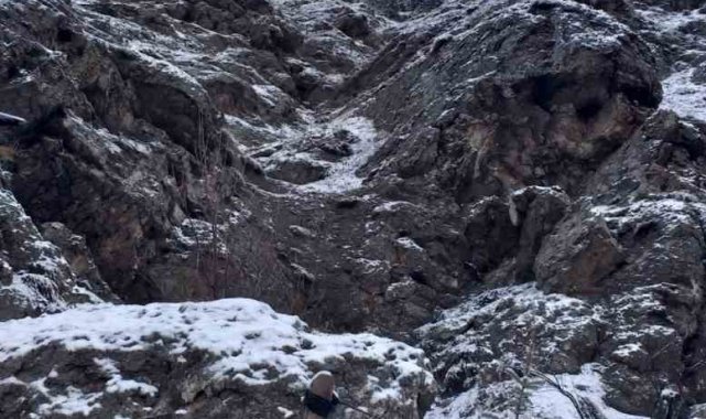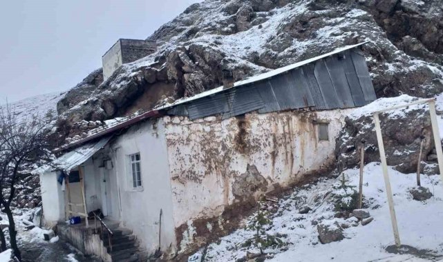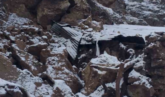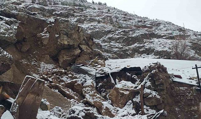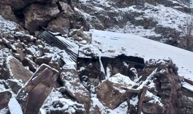 Sivas'ın Zara ilçesinde yamaçtan kopan kaya parçaları hem köy yoluna hem de bir ahıra düştü.