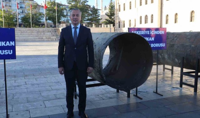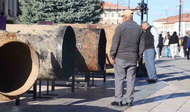 Sivas'ta yer altından çıkarılan borular kent meydanında sergileniyor