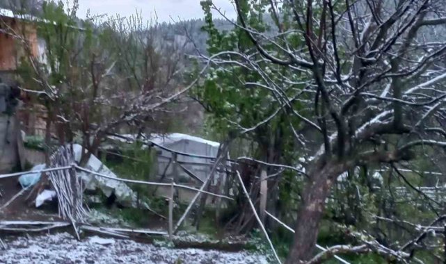 Sivas'ta, Mayıs ayının ortasında yağan kar, görenleri hayrete düşürdü. O anlar cep telefonu kamerasına yansıdı.