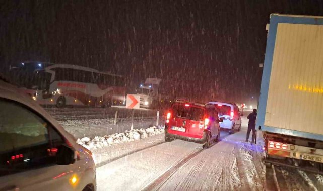 Sivas'ın Gürün ilçesinde etkili olan yoğun kar yağışı trafikte aksamala...