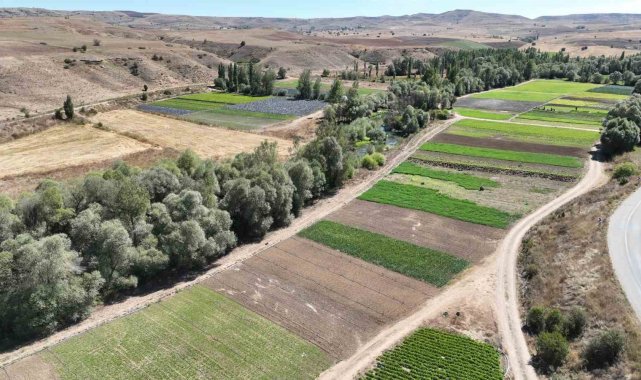 Sivas'ın Yıldızeli ilçesine bağlı Töngel köyünde 80 dönümlük araziye ekilen 10 çeşit sebze adeta bozkırı yeşertti.