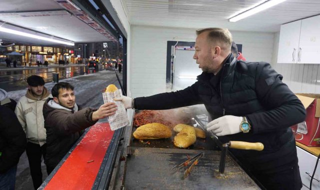 Sivas'ta yaptığı tostlar ile ün salan ve sosyal medya paylaşımları ile izlenme rekorları kıran işletmeci, Berat Kandili nedeniyle sucuk ekmek dağıttı.