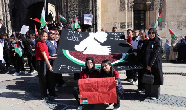 Sivas'ta yüzlerce öğrenci, STK'ların da desteğiyle, Gazze saldırılarını kınamak ve Filistin'e destek vermek için İstasyon Caddesi'nde toplandı Ellerinde Türk bayrağı ve Filistin bayrakları ile tarihi kent meydanına yürüyen kalabalık İsrail'i kınayan yazıların yer aldığı dövizler açarak sloganlar attı, tekbir getirdi. Kuran-i kerim tilavetinin ardından konuşan Gazi Osman Paşa İlkokulu Müdürü Ömer Doyan, "2 yıldır devam ettiğiniz soykırımda, kişi başına binlerce kilo bomba attığınızı gördük. 10-15 kiloluk bedenleri, binlerce kiloluk bombalarla parçaladığınızı, tüm dünya ekranlardan izledi. Onlarca askerinizle 13-14 yaşlarındaki bir arkadaşımızın gözünü bağladığınızı, ellerini kelepçelediğinizi, 5-6 yaşlarındaki çocukları bile tutukladığınızı herkes biliyor. Bugün, Filistin soykırımının ikinci yılı. Bu acıyı yazabilecek yazar yok mu dünyada? Bu vahşetin resmini çizebilecek ressam da mı yok? Ya bu katliamı anlatabilecek bir şair? Şehit babasını öperek gönderen bir çocuğun şiirini ya da 3 yaşındaki şehit kızını öperek gönderen babanın acısını kim yazacak? kendi çocuğunun katledildiği haberini alan sağlık çalışanının hikâyesini kim anlatacak? Öldürülen arkadaşı için "daha güvenli bir yere gitti" diyerek çevresindeki arkadaşlarını teselli eden çocuğun derdine kim derman olacak? Vatan topraklarını çocuk kanlarıyla sulayan, yürekleri kendilerinden daha büyük çocukların gözyaşlarını kim silecek?" ifadelerine yer verdi.