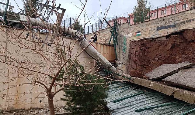 Şanlıurfa'nın Siverek ilçesinde etkili olan yağışlar sonrası Molla Ramazan Anadolu İmam Hatip Lisesi'nin bahçe istinat duvarı, öğrencilerin okula giriş saatinde çöktü. Olayda can kaybı ya da yaralanma yaşanmazken çökme anı güvenlik kameralarına yansıdı.