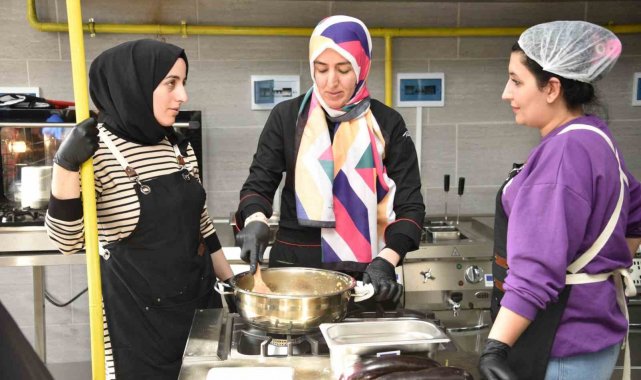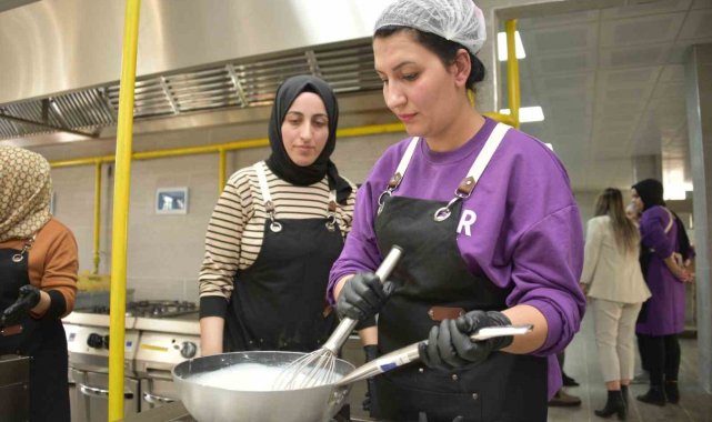 Kısa süre önce hizmete başlayan Karacadağ-Siverek Gastronomi ve Girişimcilik Merkezi'nde, 30 kadın kursiyer usta öğreticiler gözetiminde yöresel yemekler ve yöresel tatlıları yapmayı öğreniyor.