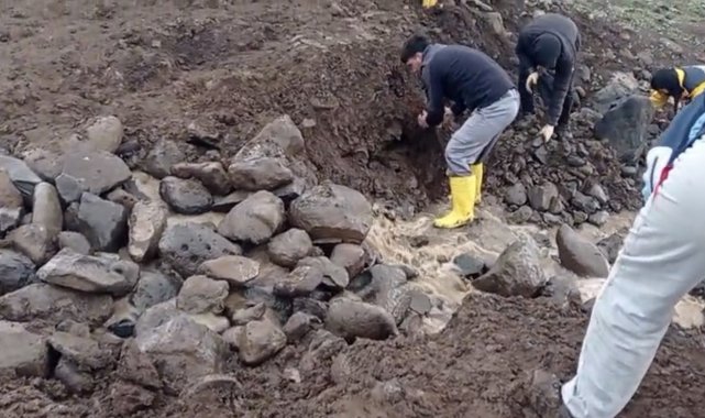 Siverek'te hasar gören sulama göletini vatandaşlar onardı