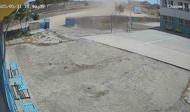 İlçeye 6 kilometre uzaklıkta bulunan Bayırözü İlkokulu ve Ortaokulu'nun bahçe kapısı, hortumun etkisiyle yerinden sökülerek kırıldı. O anlar, okulun güvenlik kamerası tarafından saniye saniye kaydedildi.