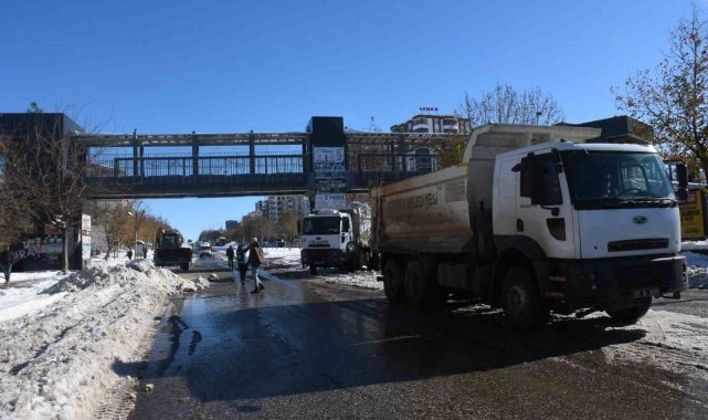 Siverek'te kar kütleleri kamyonlarla şehir dışına taşınıyor