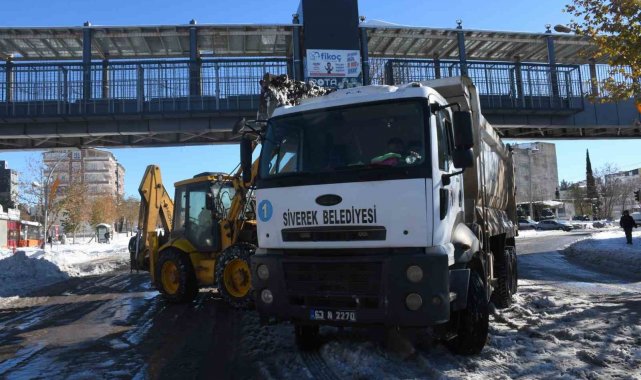 Şanlıurfa'nın Siverek ilçesinde iki gün boyunca etkili olan yoğun kar yağışının ardından şehir merkezinde biriken kar kütleleri kamyonlarla şehir dışına taşıyor.