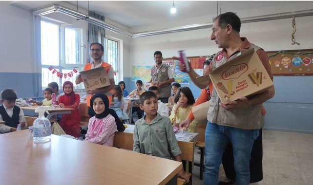 Siverek'te öğrencilere karne gününde dondurma ve kek ikram edildi