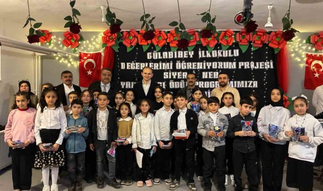 Siverek'te Gülabibey İlkokulu tarafından Türkiye Yüzyılı Maarif Modeli'nin Erdem-Değer-Eylem çerçevesi kapsamında düzenlenen Siyer-i Nebi Kitap Okuma ve Bilgi Yarışması'nda dereceye giren öğrenciler için ödül töreni gerçekleştirildi.