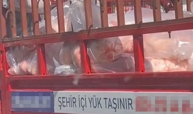 Kurban Bayramı öncesi Şanlıurfa'nın Siverek ilçesinde kavurucu sıcak altında açık kasa kamyonetle et taşınan görüntüler tepkilere neden oldu.