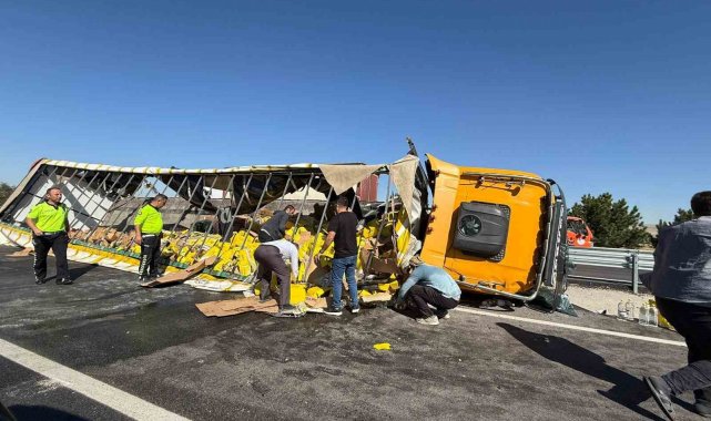 Afyonkarahisar'da sıvı yağ yüklü tır kontrolden çıkarak orta refüje devrildi.