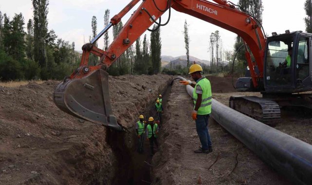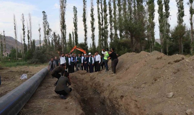 Erzurum'un Oltu ilçesi Sivridere Göleti Sulaması İkmali 2. kısım başlangıcından önce 1. kısım işi kapsamında; ana hat üzerinde 6 bin metre boru döşendi.