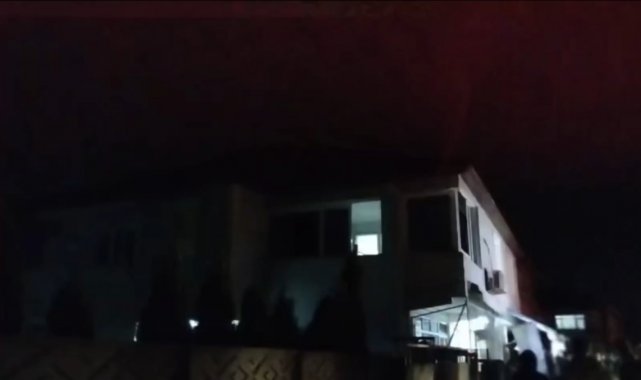 Düzce'de etkili olan rüzgarla birlikte bir evde sobadan kıvılcımlar çıkınca, ev halkı panik yaşadı.