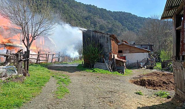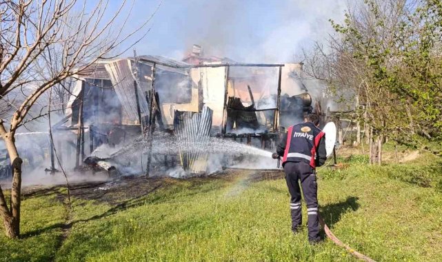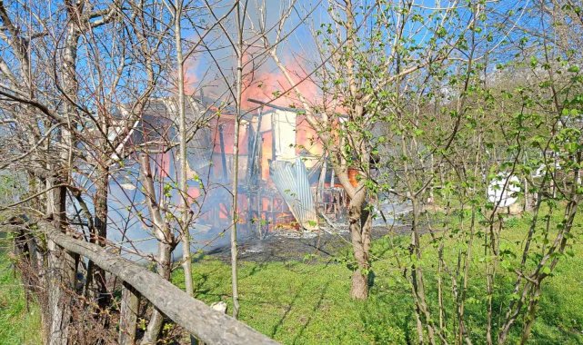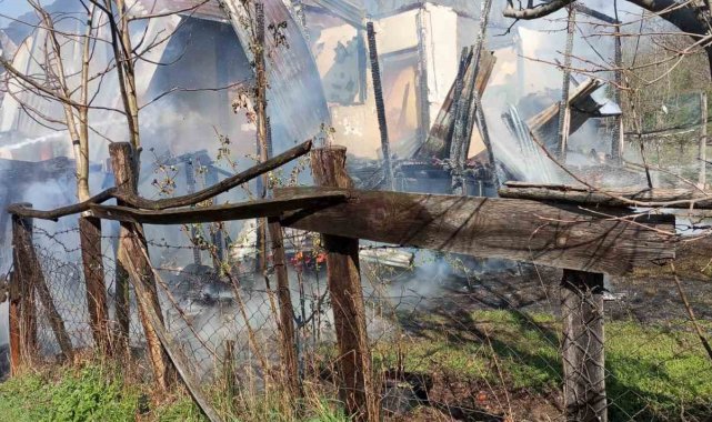 Bolu'da soba kaynaklı çıkan yangında 2 katlı ahşap ev küle döndü.