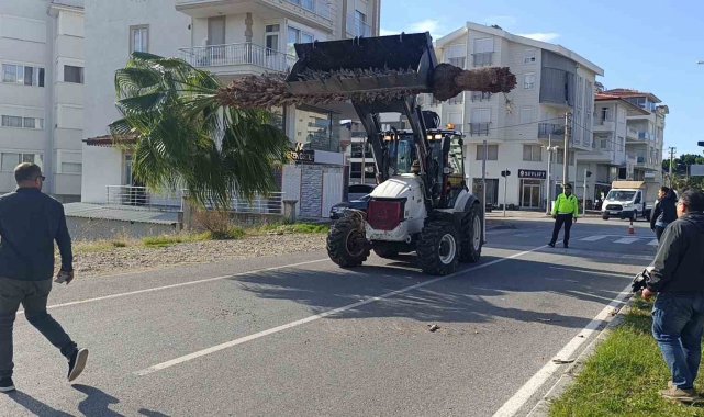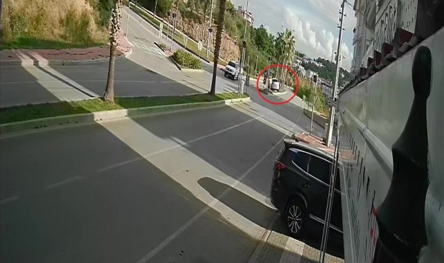 Şoförlük eğitimi yaparken refüjdeki palmiyeyi devirdi, kaza anı güvenlik kamerasına yansıdı