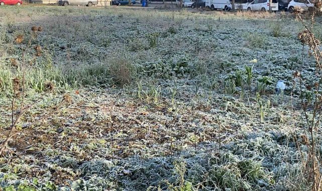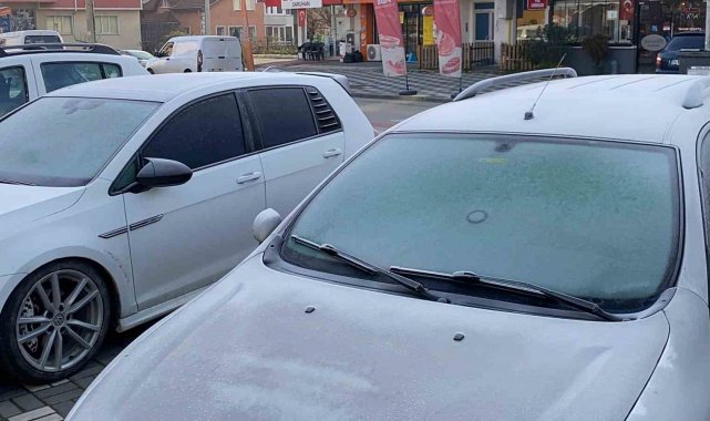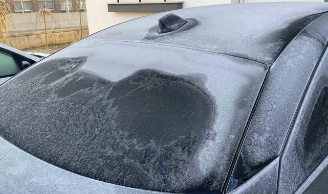 Soğuk hava sebebiyle çimler ve otomobil camları buz tuttu
