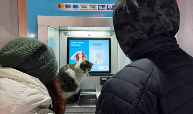 İstanbul'da etkisini hissettiren soğuk hava, sokak hayvanlarını da zor durumda bıraktı. Küçükçekmece'de soğukta üşüyen bir kedin, banka ATM'sinin sıcaklığına sığındı. ATM'nin işlem yapılan bölümüne çıkarak ısınmaya çalışan kedi, para çekmek isteyen vatandaşları gülümsetti. Kimseye aldırmadan kendini temizleyen kedi, meraklı vatandaşların fotoğraf karelerine konu oldu. İşlemlerini gerçekleştirdikten sonra kediyi severek ATM'den ayrılan vatandaşlar kameraya yansıdı.