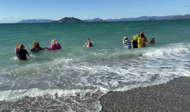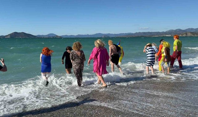 Muğla'nın Fethiye ilçesinde yaşayan çoğunluğu İngiliz uyruklu vatandaşlar, yeni yılın ilk gününde Çalış Plajı'nda renkli kostümlerle denize girerek ihtiyaç sahibi çocuklar ve hayvanlar için bağış topladı.