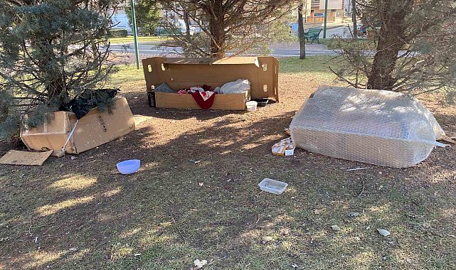 Eskişehir'in Vişnelik Mahallesi'nde duyarlı vatandaşlar, soğuyan havalarla birlikte sokak hayvanlarının barınması için karton kutu ve çeşitli malzemelerden korunaklı yuvalar oluşturdu.