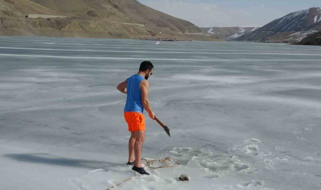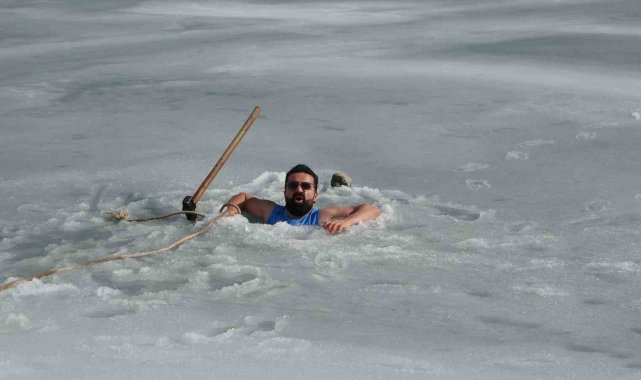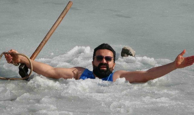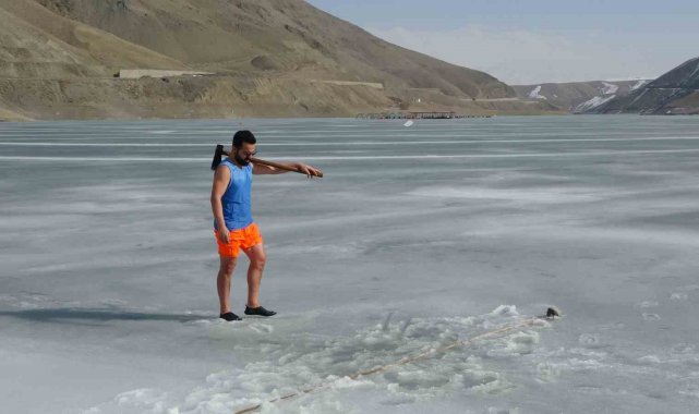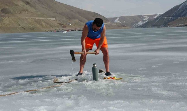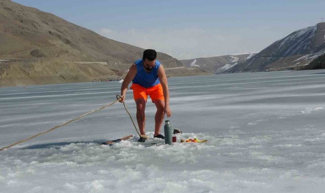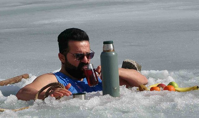 Van'da sıra dışı etkinlikleriyle tanınan maceracı bir öğretmen, barajdaki suyun buz tutmuş yüzeyini kırarak suya girdi. Balık avlamak yerine buzlu suyun içinde çay içen öğretmen, hem sağlıklı yaşama hem de kentin kış turizmine dikkat çekti.
