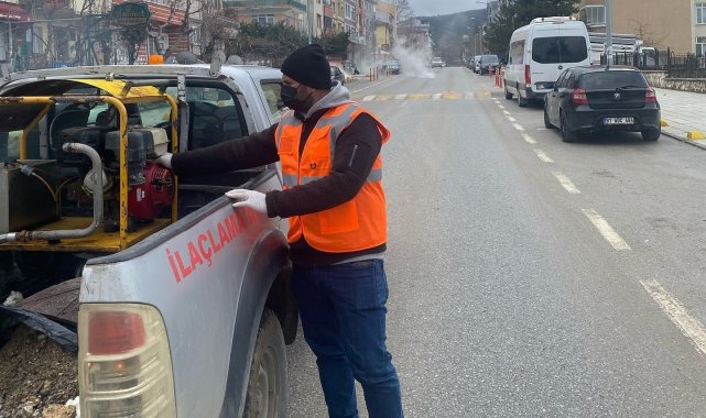 Bilecik'in Söğüt ilçesinde belediye ekipleri Ertuğrulgazi Caddesi ve ilçenin çeşitli noktalarında düzenli aralıklarla ilaçlama çalışmaları gerçekleştiriyor. Belediye Başkanlığı tarafından yapılan açıklamada, bu çalışmaların halk sağlığını koruma amacı taşıdığı ve sinek popülasyonunu kontrol altına almayı hedeflediği vurgulanarak, "Vatandaşların bu tür çalışmalara duyarlılık göstermesi ve ilaçlama yapılan bölgelerde dikkatli olmaları gerekir. Özellikle yaz aylarında artan sinek ve larva popülasyonunun kontrol altına alınması ve çevre sağlığının korunması açısından büyük önem taşıyan bu ilaçlama çalışmalarının, belediye ekipleri tarafından titizlikle sürdürecek" denildi.