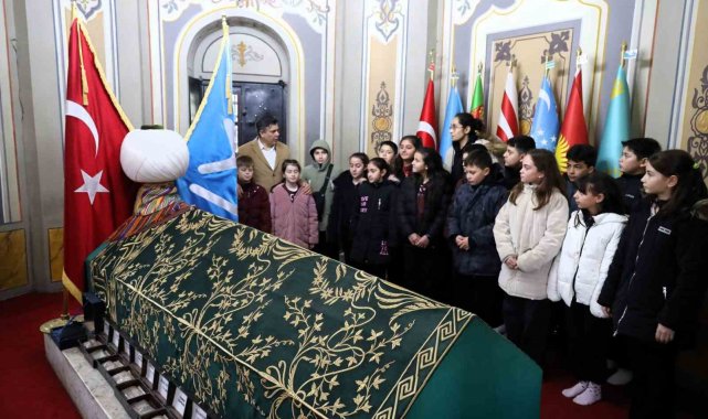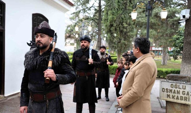 Söğüt'e gelen öğrencilere başkan Durgut Ertuğrulgazi Türbesi'nde rehberlik etti