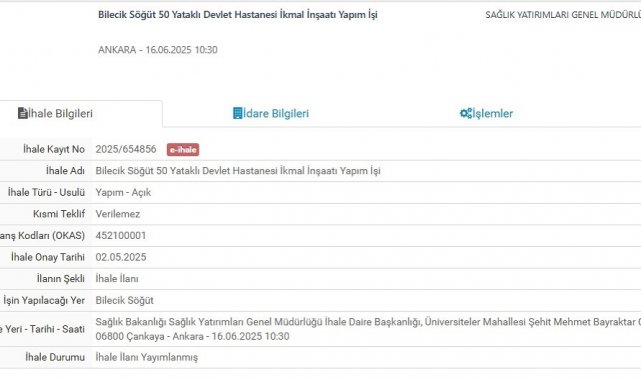 Bilecik'in Söğüt ilçesinde uzun süredir beklenen "50 Yataklı Devlet Hastanesi" projesinde önemli bir gelişme yaşandı.