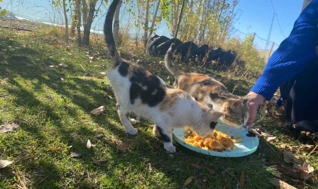 Ağrı'da yaşayan ve sokak hayvanlarını yalnız bırakmayan Seren Albay, evine aldığı kedileri elleriyle besleyerek üç yıldır sevgiyle yaşatıyor.