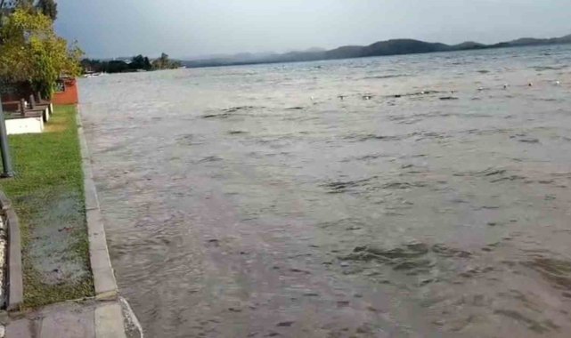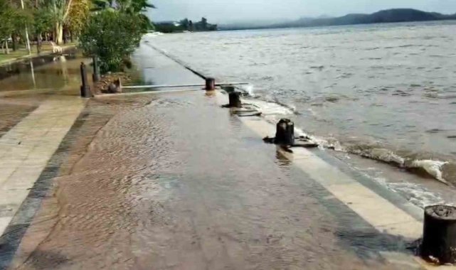 Muğla'nın Köyceğiz ilçesinde etkili olan sağanak yağış sonrasında sokaklar göle dönerken, yağışlardan nasibini alan Köyceğiz Gölü'nde de su seviyesi yükseldi.