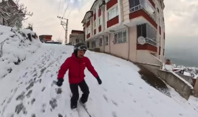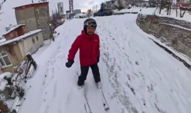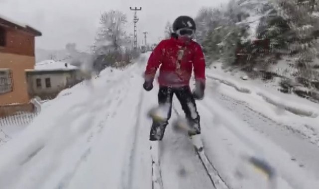Korgan ilçesinde beden eğitimi ve spor öğretmeni olan Osman Sarı (35), kar yağışının ardından kayak takımını alarak dışarı çıktı. Arkadaşları ile buluşan Sarı, Fatsa ilçesinin ara sokaklarında ekipmanlarını hazırladı. Kaymayan başlayan ve arkasından gelen araçtan hız alarak, ilçenin ara sokaklarını adeta piste çevirdi.