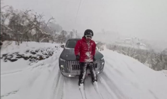 Bölgenin zorlu coğrafyasındaki virajlı yollara rağmen başarıyla kayak yapan Sarı, o anları kayıt altına aldı. Sosyal medyada paylaşılan görüntüler büyük beğeni topladı.