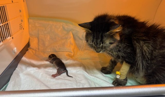 Hayvanseverler tarafından sokakta yaralı ve kanamalı halde bir kedi bulundu. Durumu fark eden hayvanseverler, vakit kaybetmeden kediyi veteriner kliniğine götürdü. Burada veteriner hekim Gökmen Koç tarafından muayene edilen kedi, acilen ameliyata alındı. Yapılan müdahalede kedinin karnındaki dört yavrudan üçünün hayatını kaybettiği belirlenirken, bir yavru canlı olarak kurtarıldı ve kuvöze alındı. Koç, yavru kedi için süt anne aradıklarını ifade etti.