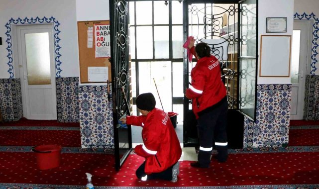 Ekipler tarafından cami içi ve çevresinde genel temizlik yapılırken; halılar süpürülüp, camlar siliniyor, bahçe bölümlerinde şadırvan alanlarında da temizlik uygulamaları gerçekleştiriliyor.