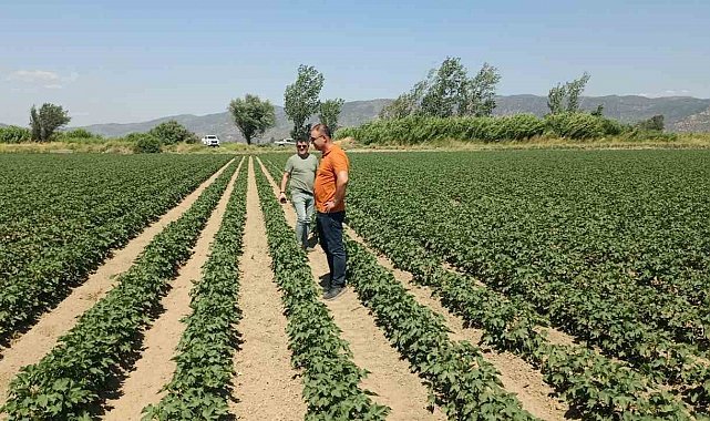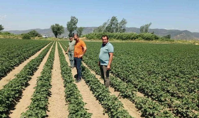 Aydın'ın Söke ilçesinde tarım alanlarında yürütülen denetim ve inceleme çalışmaları sürerken, pamuk ve ayçiçeği tarlalar incelendi.